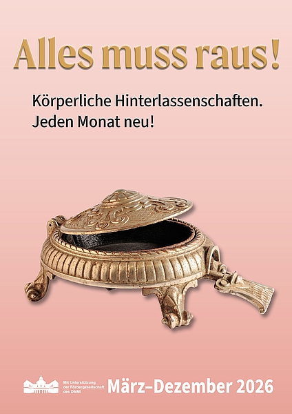 Aufgrund der Sparmaßnahmen der Stadt Ingolstadt haben wir die Eröffnung der nächsten Jahresausstellung von Frühjahr 2026 auf Frühjahr 2027 verschieben müssen. Um dioe Türen zum Sonderausstellungsraum nicht ganz schließen zu müssen, zeigen wir von März bis Dezember die Ein-Vitrinen-Ausstellung „Alles muss raus!".